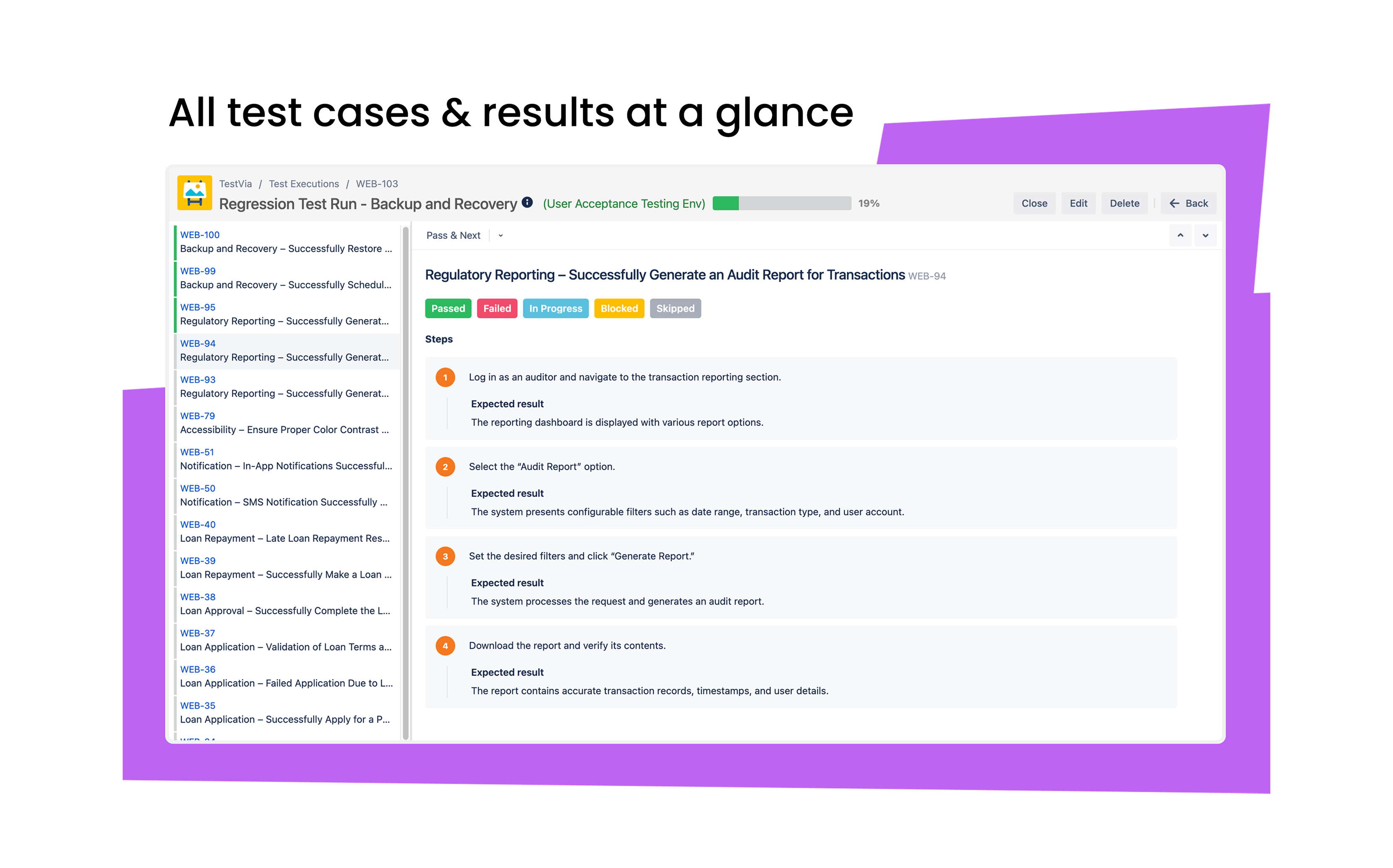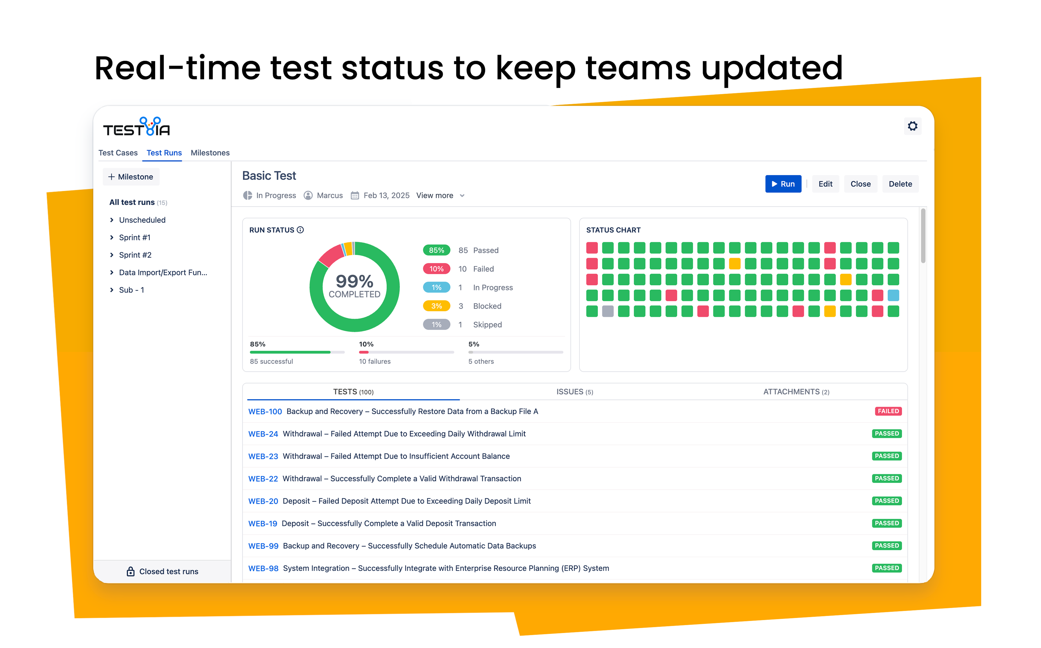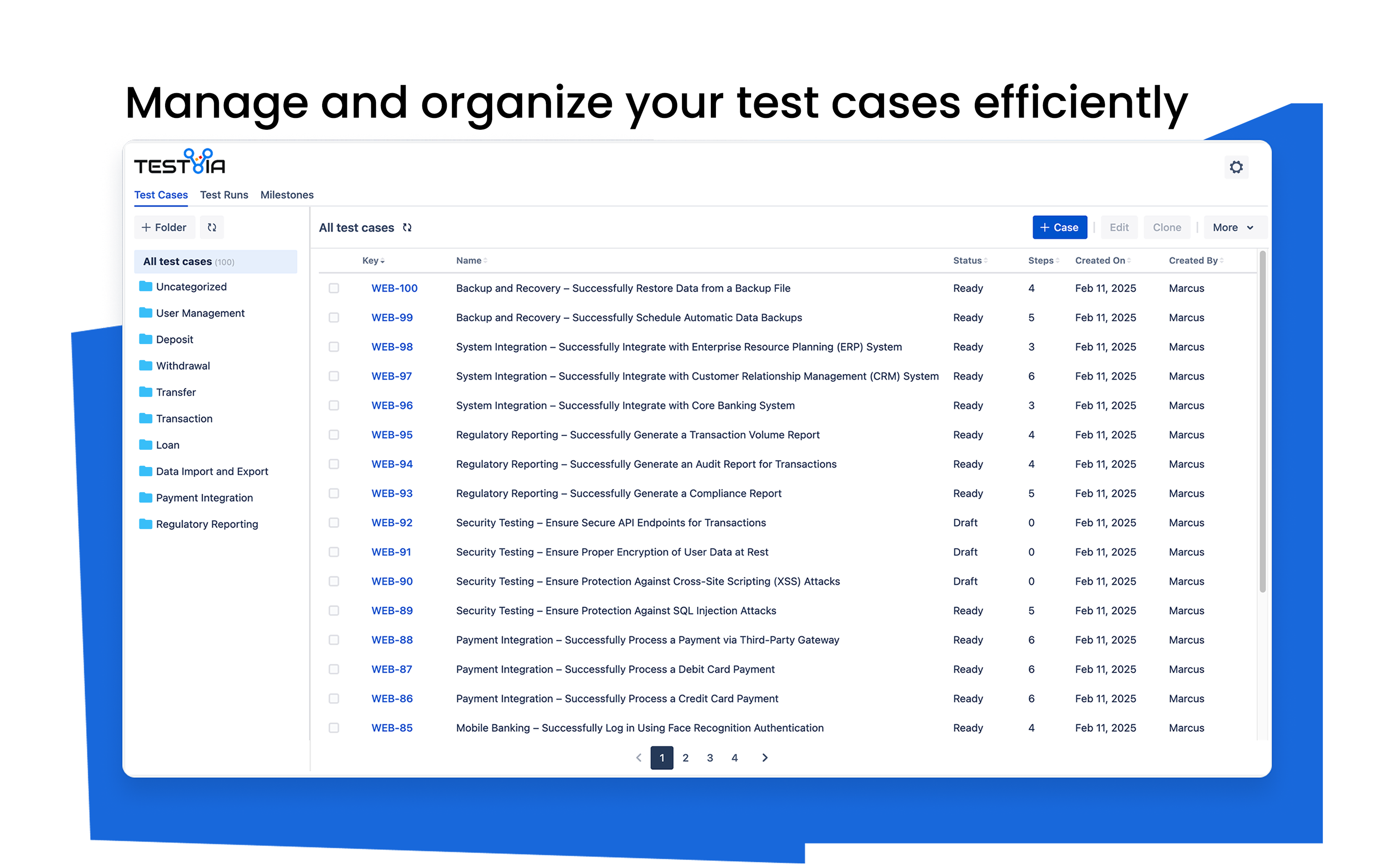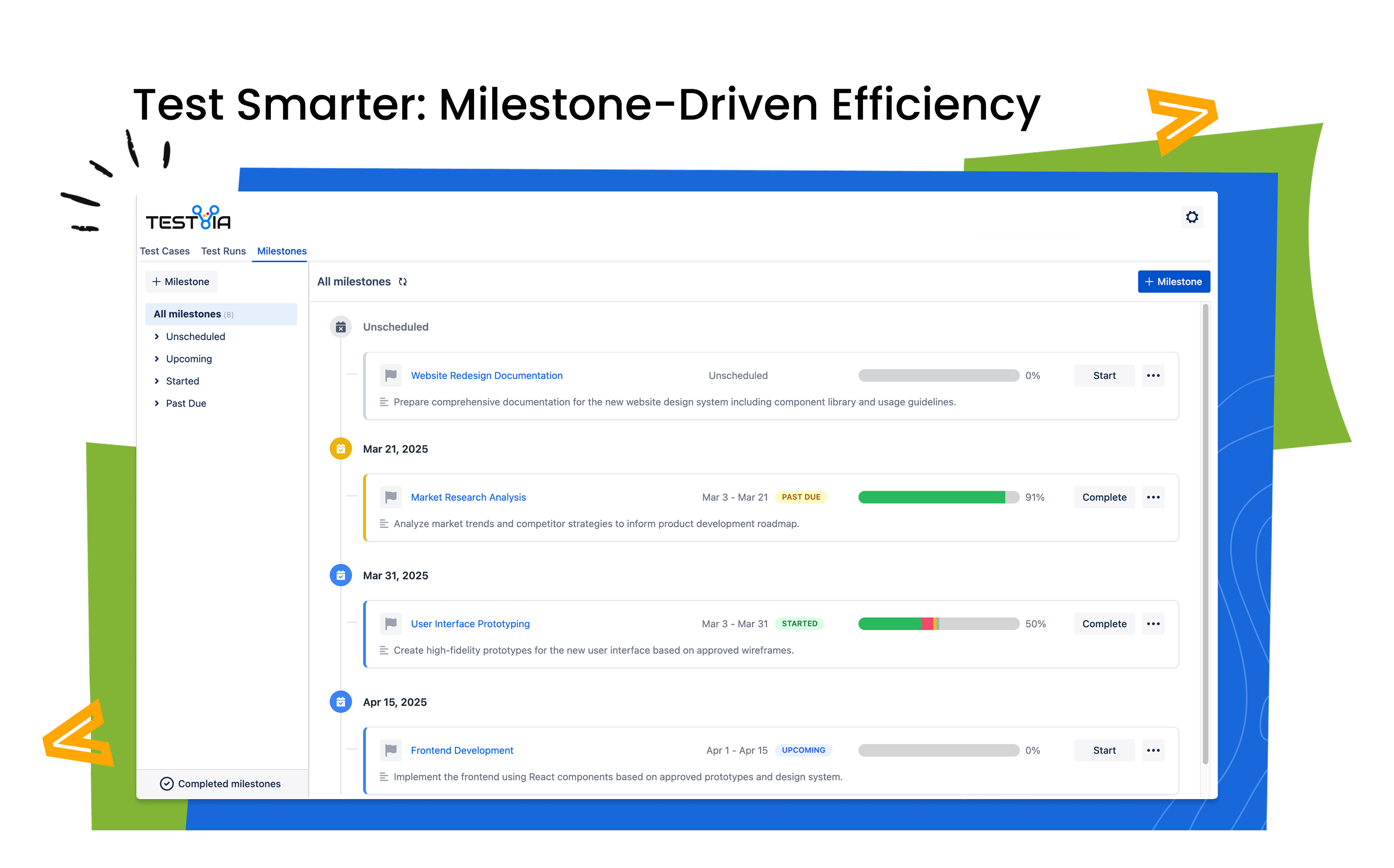 TestVia provides teams with an intuitive and efficient test management experience. With structured test case organization, real-time progress tracking, and milestone-driven execution, our flexible platform seamlessly integrates into your workflow. Enhance collaboration, boost productivity, and streamline testing with TestVia.