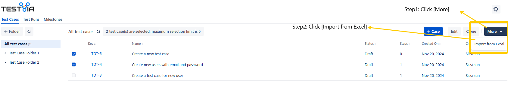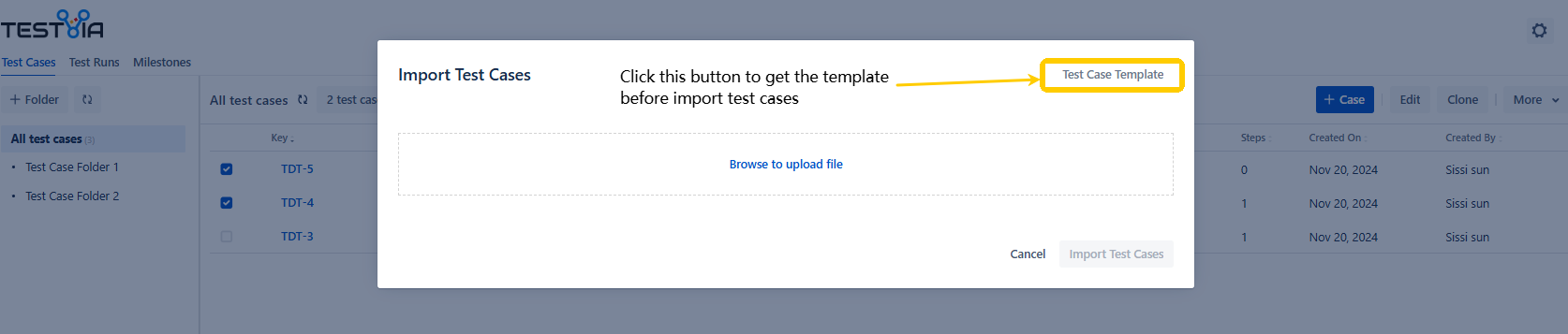 Test Cases Template for Importing: Test cases template for TestVia.xlsx